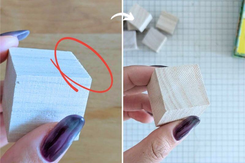 100円ショップで購入した立方体の木材が役に立ちます。一袋に8個入っているので8種類つくれます。